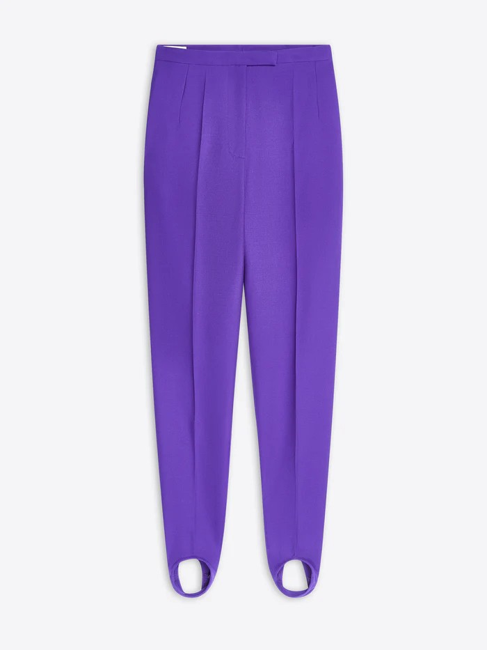 Slim fit. Mid rise. Anchoring stirrups. Back jetted pockets. Front zip and hook and eye closure.